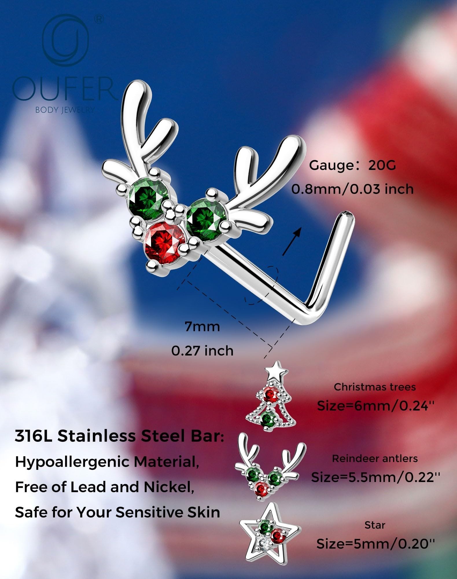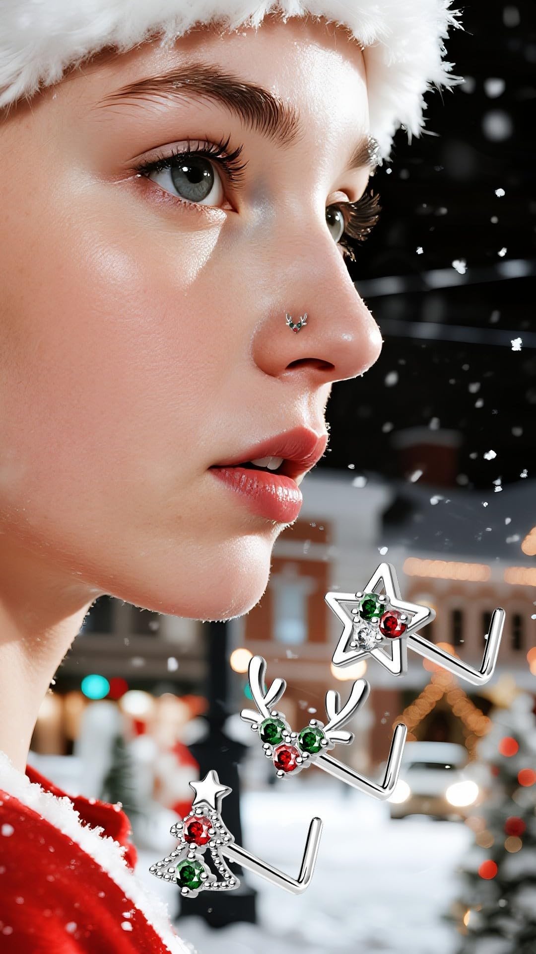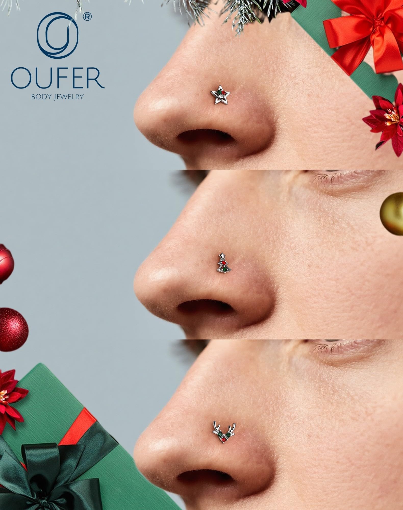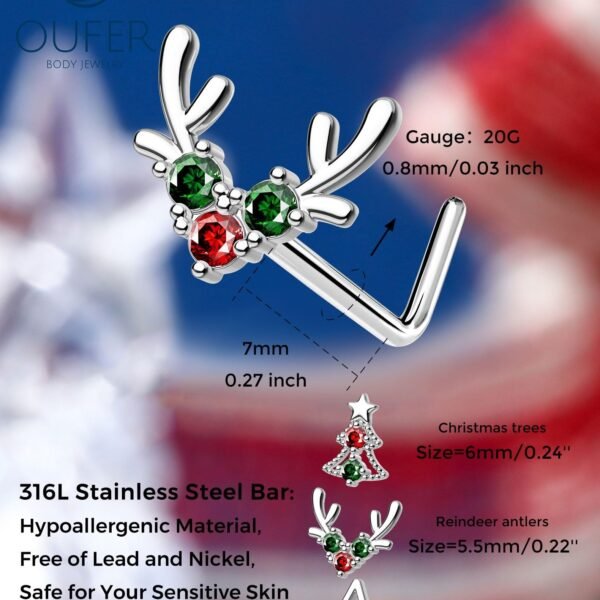 - Christmas Sparkling Design — 3PCS nose stud rocks a cute christmas tree deer star design, blending fashion with a hint of sass. The christmas design adds visual appeal and amps up the overall charm.